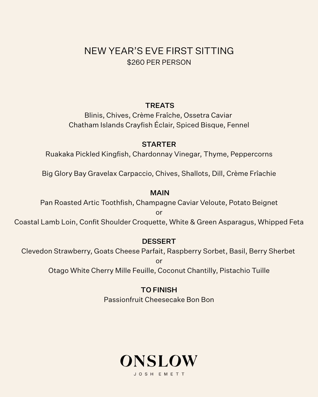 Below we have our sample menu for our New Year's Eve First Sitting. To view 'Download PDF' from below.